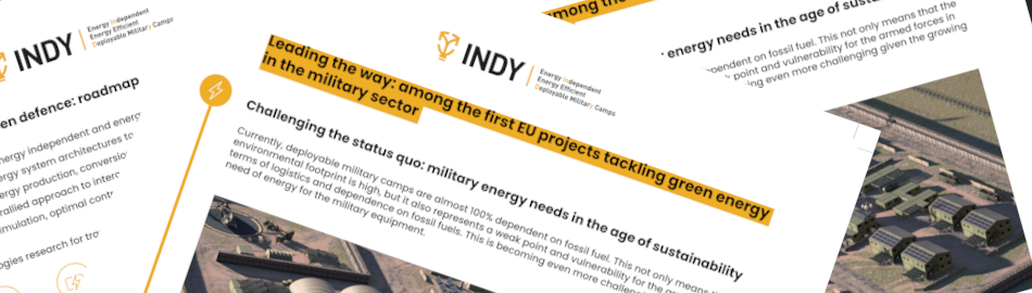 Discover our visually compelling leaflet offering a general overview of the INDY project's commitment to achieving energy autonomy in military operations. The leaflet includes all the important aspects of the INDY project.